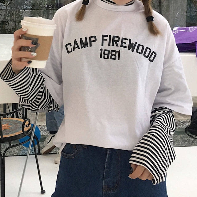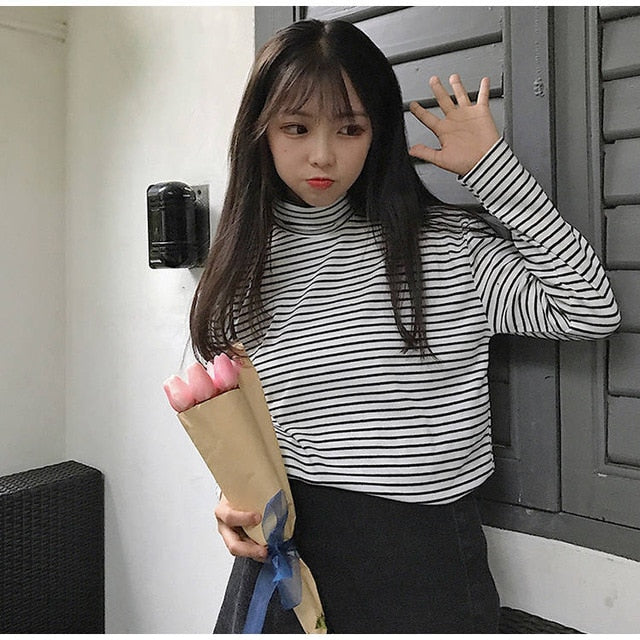 Harajuku funny cute Striped Sweatshirt: Women Coat Winter